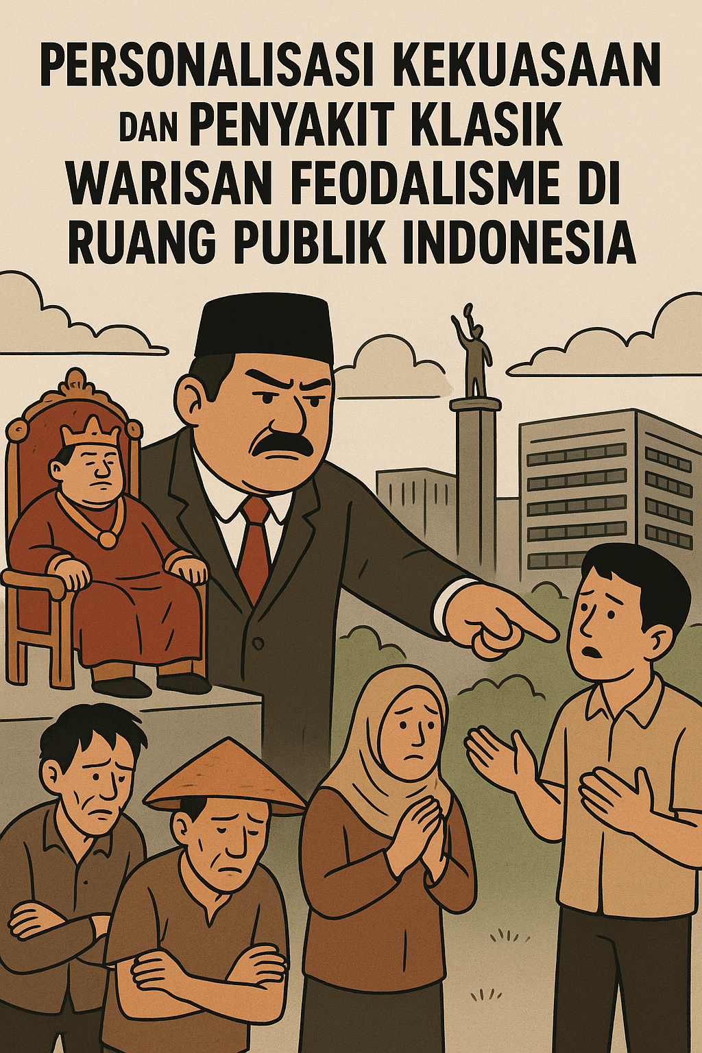 Kanker yang diwariskan kedalam negara yang kita anggap demokrasi tidak hanya mengubah bagaimana kekuasaan dijalankan. Tetapi juga membentuk cara pandang kita terhadap negara, ketika negara diasosiasikan sebagai figur dan bukan sistem, kita dengan mudah menilai kinerja pemerintah atau pejabat berdasarkan seberapa sering wajah pimpinannya muncul di ruang-ruang publik, bukan pada kualitas kebijakan, transparansi anggaran apalagi outcome dari apa yang sudah dilakukan. Kita tidak lagi terlatih untuk memeriksa prosedur formal, menuntut akuntabilitas, atau menilai kebijakan secara objektif. Sebaliknya, kita hanya menunggu arahan, atau hanya menilai berdasarkan simbol visual yang dipertontonkan siang malam. Jika kita lihat kedalam lubang yang debih dalam, budaya macam ini menciptakan ruang di mana kritik yang menjadi mekanisme demokrasi itu dianggap sebagai serangan personal. Ketika pemimpin menjadi simbol pribadi yang sakral, maka menentangnya dianggap sama dengan menentang dirinya secara individu, pemimpin dilihat bukan sebagai petugas publik, melainkan sebagai tokoh yang harus dihormati tanpa syarat. Inilah warisan feodal yang masih menjadi kabut dalam darah bangsa kita yang terasa pekat hingga hari ini.